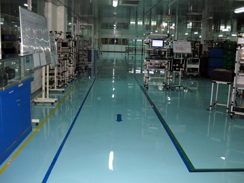 ⑥自流平面漆:用自流平型環(huán)氧面漆均勻鏝涂一道,完工后整體地面達到光亮潔凈,顏色均一,無空鼓;